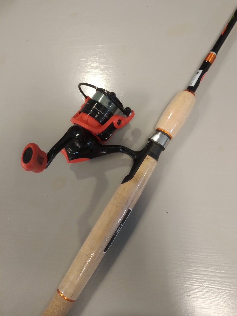 Meget hyggelig pakkepris. Pakke med stang / snelle, påspolet 0,14 multifilament. Så her er det bare rett ut og fiske.