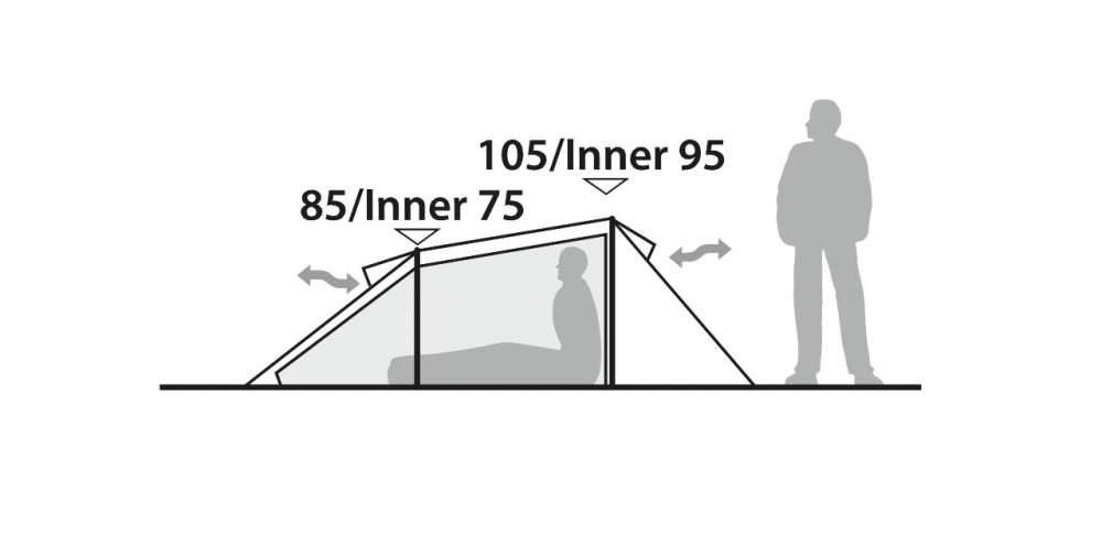 Det hurtigoppsetende teltet bruker det skrånende tunneldesignet ved siden av inngangen for å gi stabil og komfortabel soveplass med forbedret takhøyde for bruk alene, samtidig som pakningsstørrelse og vekt minimeres